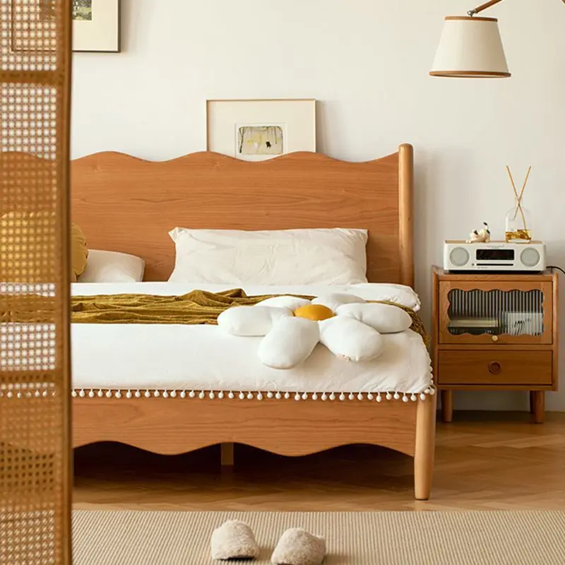 Спальня в стиле мидсенчури уютная и элегантная. Выберите кровать с высоким изголовьем и обивкой из рогожки, бархата, кожи. Дополните интерьер тумбочками с деревянными или металлическими ножками, лампами с абажурами и мягкими коврами. Текстильные элементы, такие как покрывала и подушки с геометрическими узорами, добавят спальне аутентичности.