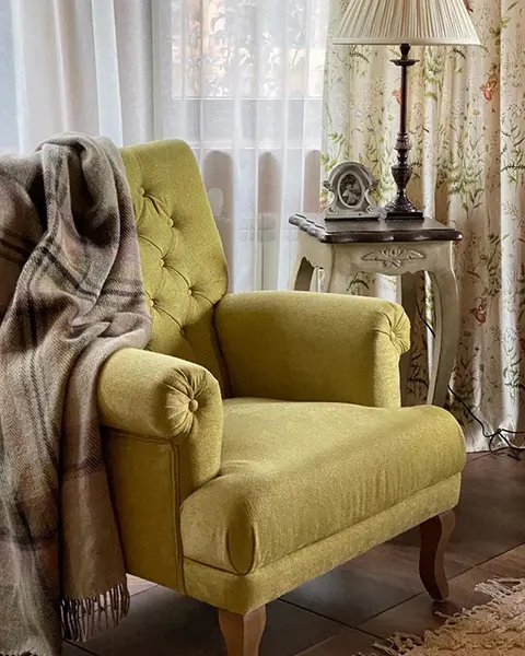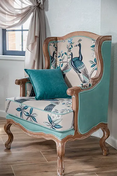 • Декоративные элементы: Капитоне (стежка ромбами), декоративные гвоздики, кисточки, бахрома, фигурные ножки – все эти детали придают креслу особый шарм и изысканность. Они добавляют текстуры и глубины, делая кресло не просто функциональным предметом мебели, а настоящим произведением искусства.