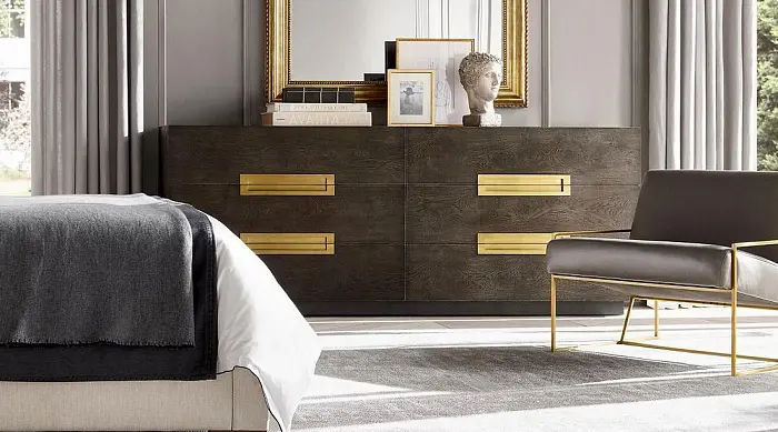 Современная интерпретация французского модерна 1940-х годов, коллекция Бретон от дизайнера Чарли Загароли сочетает в себе смелые геометрические формы и роскошные материалы. Фирменные радиусные изгибы сочетаются с прямыми линиями и Х-образными пересечениями, подчеркнутыми текстурой натурального ясеня.