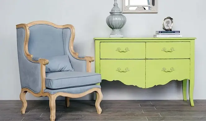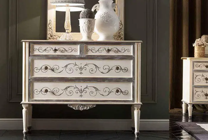 Мебель полностью покрашена вручную и покрыта легкой патиной.