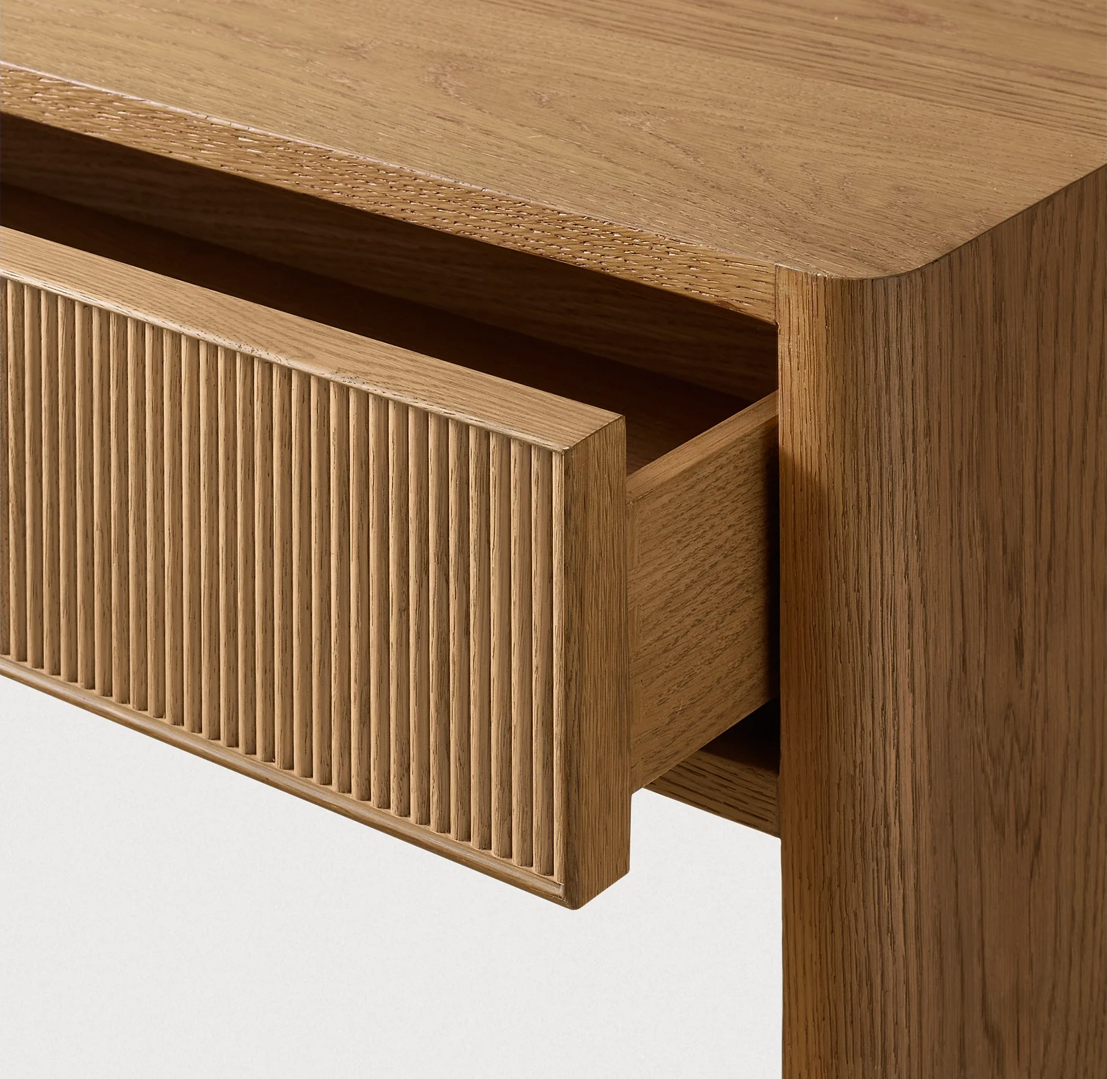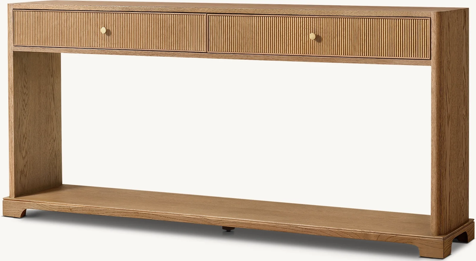 Консольный столик с 2 выдвижными ящиками Женевьева Рид — это стильный и функциональный объект, который соединяет эстетику классической Франции середины XIX века с актуальными требованиями современного интерьера. Изящный силуэт, ребристая фактура и изогнутые ножки-скобы создают элегантный контраст геометрическим линиям, а натуральная текстура ясеня добавляет тепла и визуальной глубины пространству. Этот консольный стол поможет навести порядок в мелочах и станет выразительной точкой притяжения в доме.
